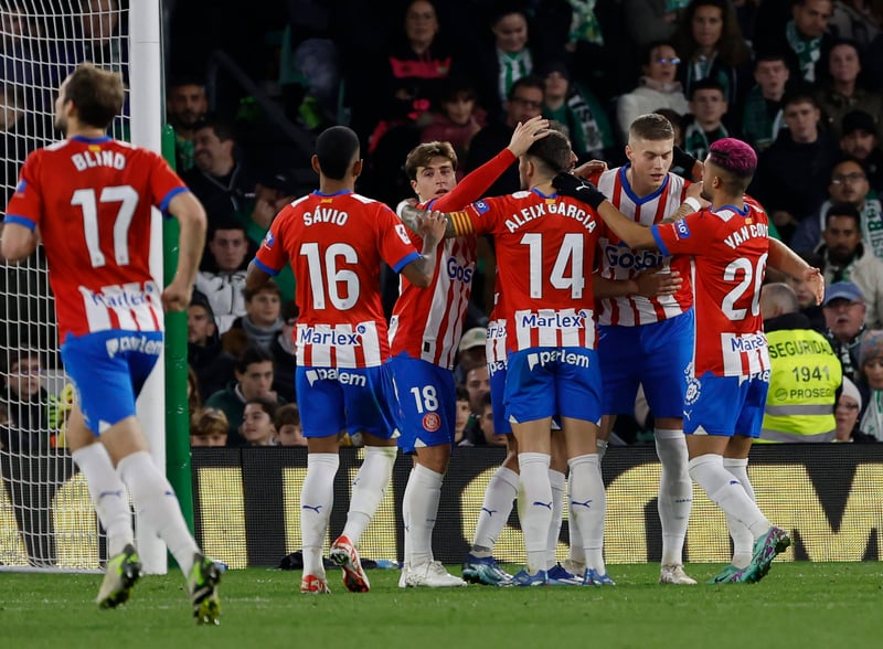 Gazzaniga; Eric García, David López, Blind, Miguel Gutiérrez; Aleix García, Iván Martín, Pablo Torre; Yan Couto, Savinho; y Dovbyk.