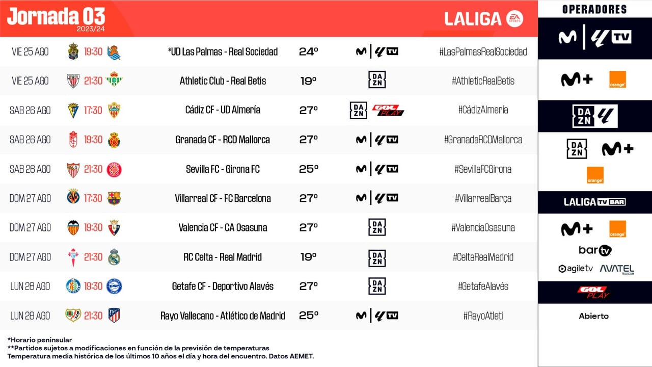 Horarios de la Jornada 3 de LaLiga@LaLiga
