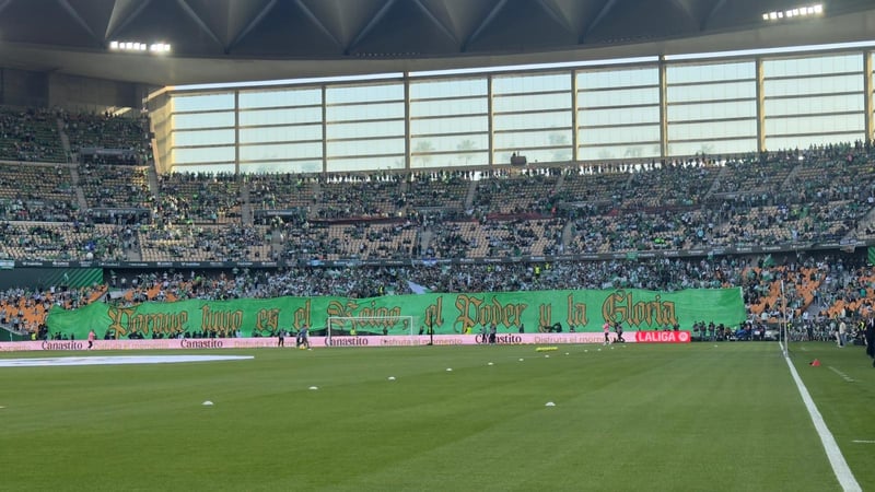 Hay un ambientazo en el Estadio La Cartuja. Bengaleo de los aficionados del Real Betis y pancartas para dar mucho color.