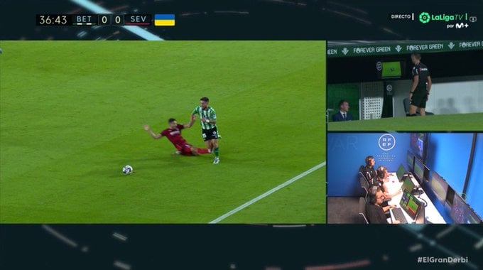 36' ¡A la calle Montiel! Ve la amarilla pero Sánchez Martínez acude al VAR tras ser avisado y ve la cartulina roja directa el argentino. Se queda con diez el Sevilla....