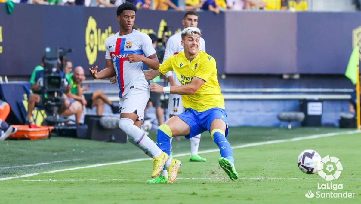 El dominio era culé y los gaditanos solo disponían de pequeños ráfagas en ataque. Un saque de falta de Lucas Pérez se envenenaba pero no encontraba rematador y un disparo a bote pronto de Raphinha salía alta.