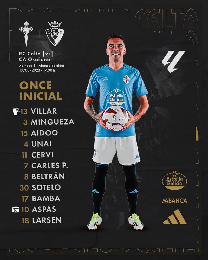 También Rafa Benítez prestó declaraciones en la previa al partido en Balaídos contra Osasuna, donde sonó el nombre del momento Gabri Veiga: "El mercado está como está y el interés por Gabri es real. Lo ideal para nosotros es que si hay una situación que se tiene que resolver se resuelva pronto, pero si no yo estoy encantado con él". Hoy no aparece en el once, pero tampoco en el banquillo.