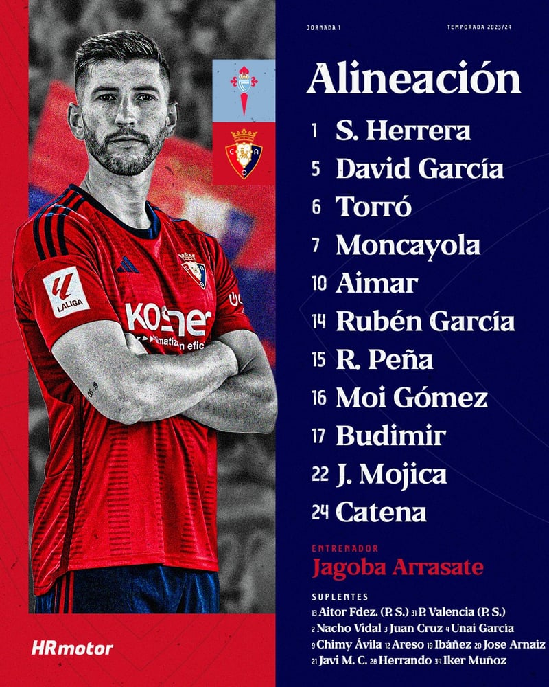 Y también conocemos los once nombres que partirán de inicio en Osasuna, para asaltar el feudo del Celta de Vigo en esta jornada 1 de LaLiga EA Sports: suplencia de Chimy Ávila y titularidad para Sergio Herrera. ¿Qué os ha llamado más la atención en los elegidos de Jagoba Arrasate?