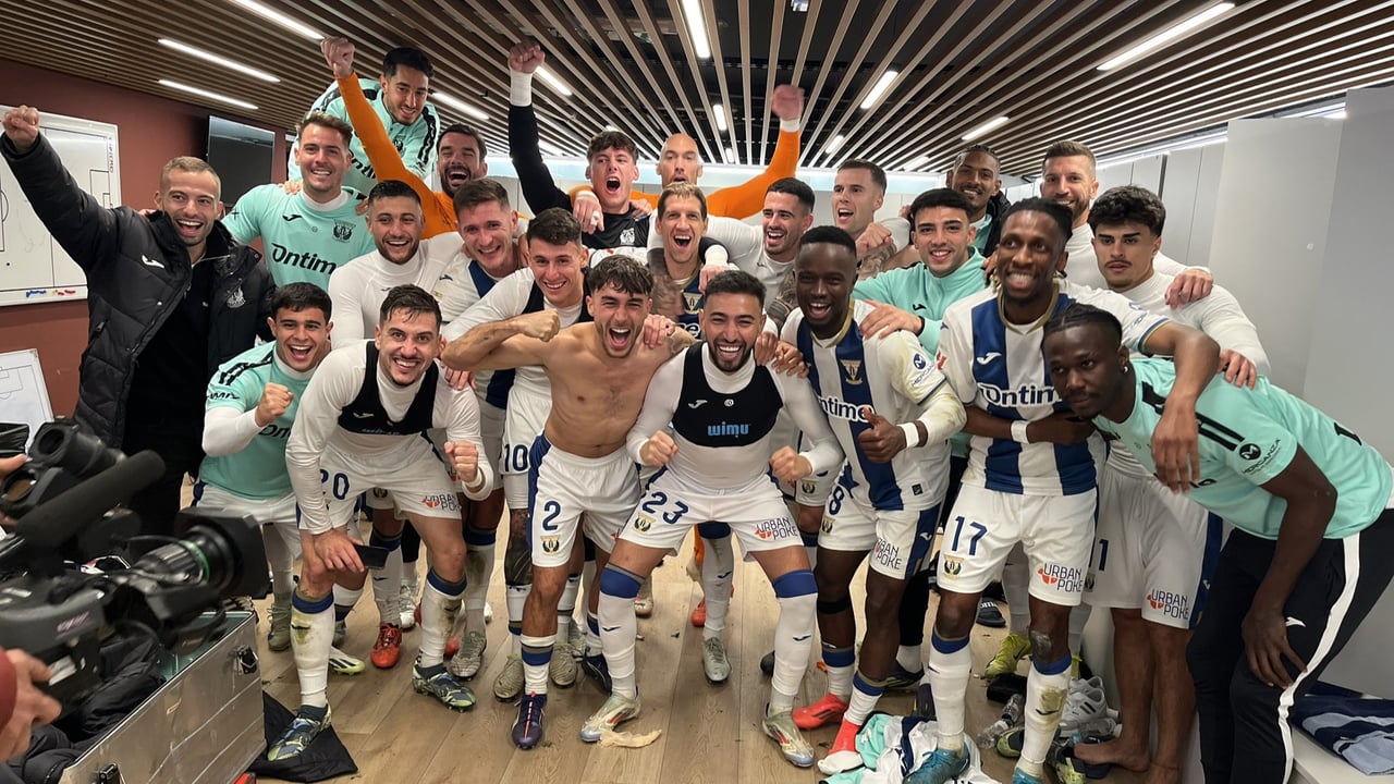 Jugadores del Leganés festejando el triunfo ante el BarçaCD Leganés