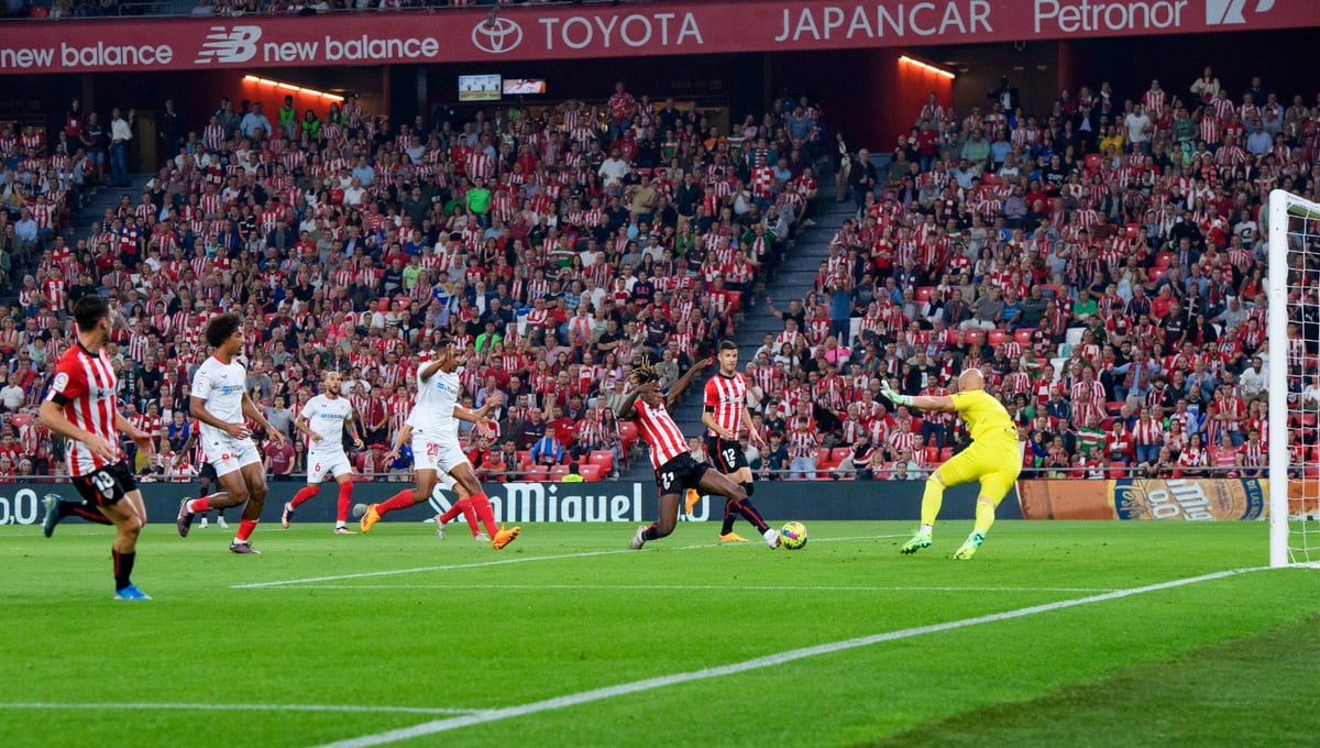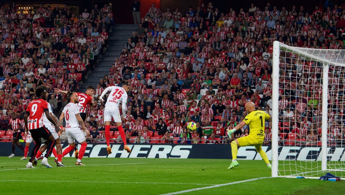 Los dos equipos conseguían llegar arriba en pocos toques, pero mientras el Sevilla FC se iba a ir al descanso sin probar a Unai Simón, con un cabezazo desviado de Lamela y una solitaria contra armada por En-Nesyri como únicas acciones de peligro real, el Athletic se mostró muy acertado mandando al fondo de la red sus dos primeros disparos a puerta. Por suerte para el Sevilla FC, el VAR anuló los dos tantos que ya celebraba un ruidoso San Mamés.