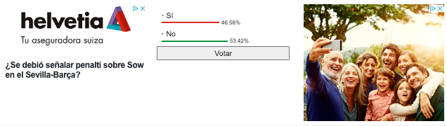 Aproximadamente el 53% de los votos emitidos en la encuesta destacan que no se debía haber señalado penalti sobre Sow, tal y como sucedió durante el partido; mientras que casi el 47% se decantan con que sí, que debería haber sido penalti.