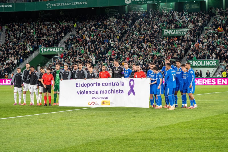 Incidencias: Encuentro correspondiente a la décimo tercera jornada de LaLiga EA Sports disputado en el estadio Martínez Valero ante 31.024 espectadores. Antes del partido se guardó un minuto de silencio con motivo del 25N, Día Internacional de la Eliminación de la Violencia contra las Mujeres, y en memoria del ex jugador del Elche Juan Carlos Lezcano, recientemente fallecido, a quien también se ha rendido homenaje con una camiseta posada con su nombre y las banderas de Elche y Paraguay. Los jugadores de ambos equipos han posado con una pancarta en contra de la violencia machista.