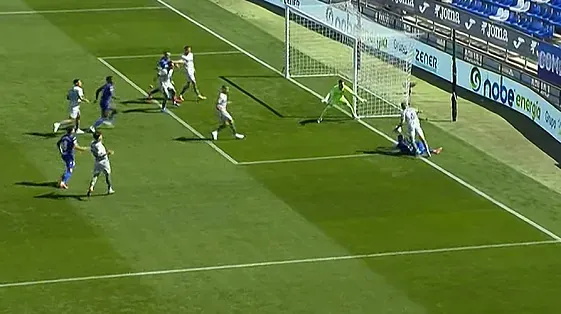 ¡Pide penalti el Getafe! Puso la falta lateral Luis Milla, cabeceó en el primer palo Alderete y despeja Toni Martínez con la mano extendida.