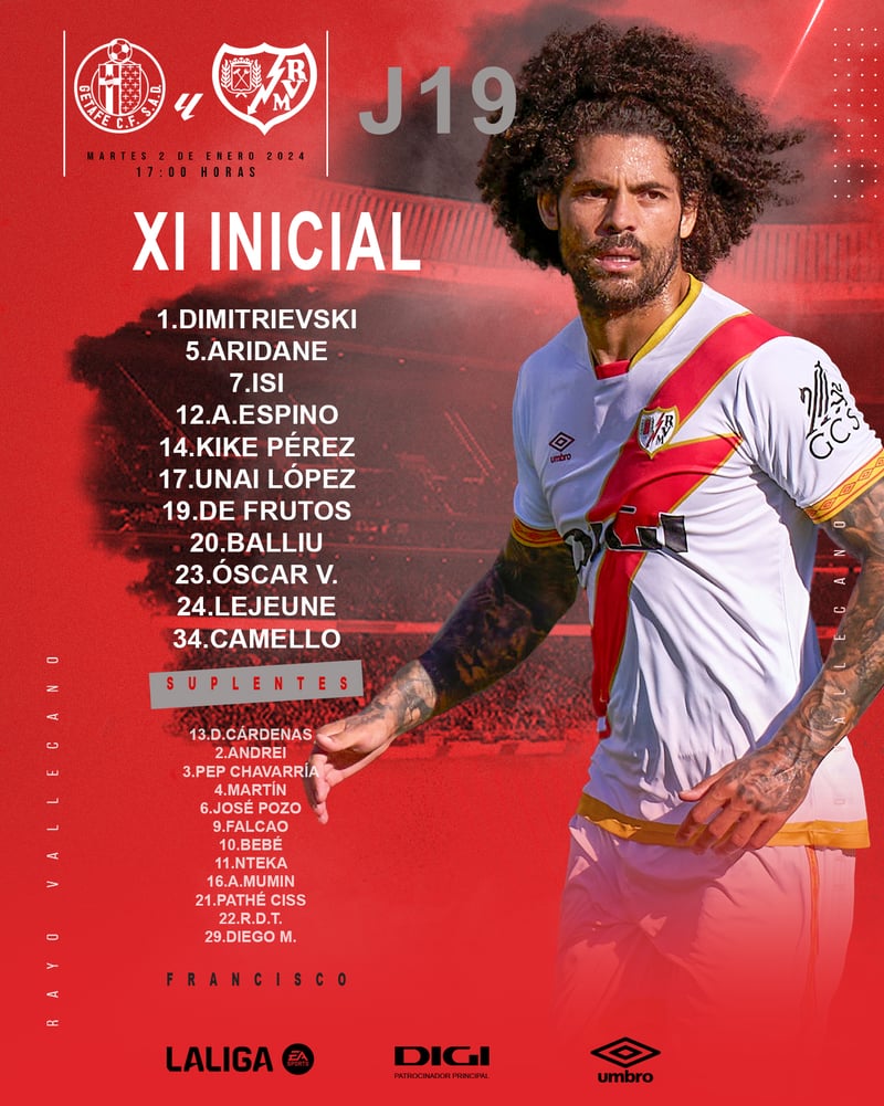 ¡El Rayo Vallecano ya ha dado a conocer el once para medirse al Getafe CF!