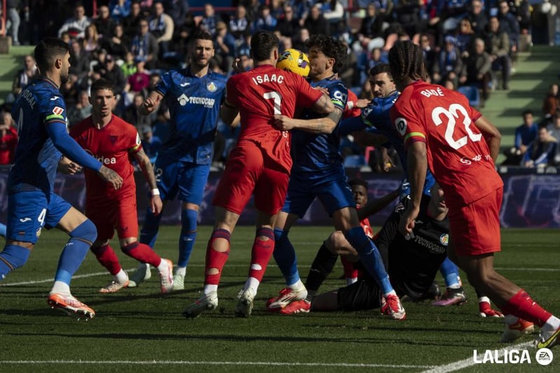 Amarilla para Isaac Romero por una trifulca en el área del Getafe, que ha dado un empujón a Arambarri antes del saque de esquina, cayendo en la trampa del jugador azulón.