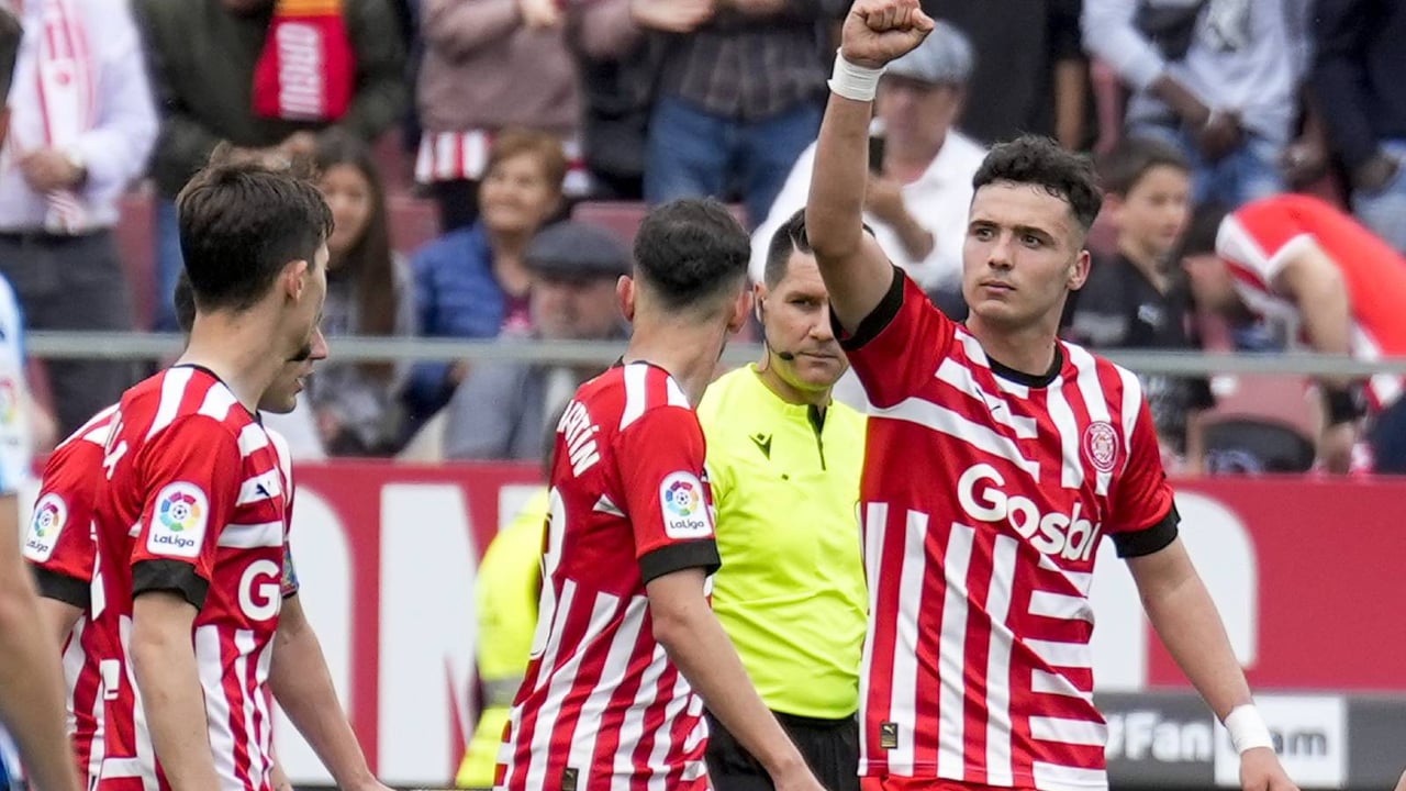 Imagen de Arnau celebrando el primer gol del Girona.Twitter / Girona FC