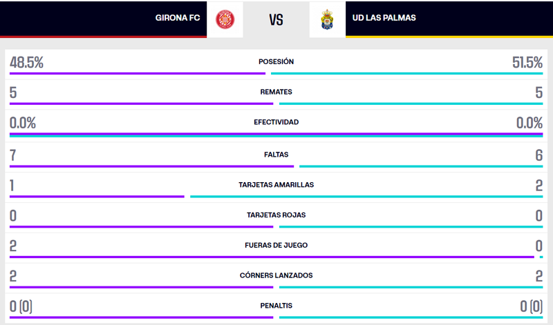 Camino de la media hora: sigue el empate a cero entre Girona y Las Palmas