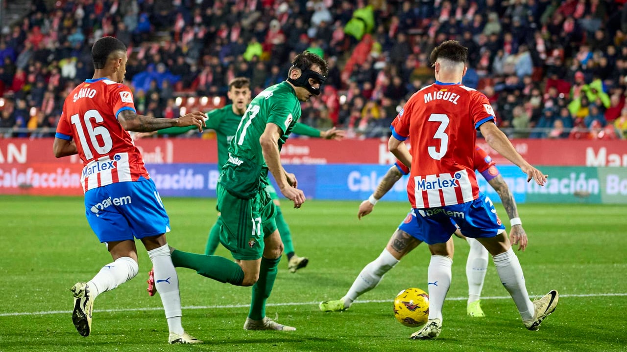 Tras el descanso los locales empezaron con la iniciativa y con un Dovbyk muy incisivo que no llegó a rematar por centímetros un centro al segundo palo de Miguel Gutiérrez. Poco después fue Blind quién estuvo cerca de marcar, pero pecó de ser defensa y falló ante Herrera. Poco más tarde llegó la acción más polémica, un empujón de Catena sobre Sávio, quien pidió penalti insistentemente, ya que se plantaba solo ante el meta, pero el árbitro lo tuvo claro.
