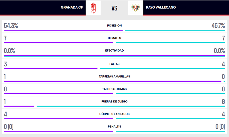 Resultado y resumen del Granada vs Rayo Vallecano en vivo y en directo online