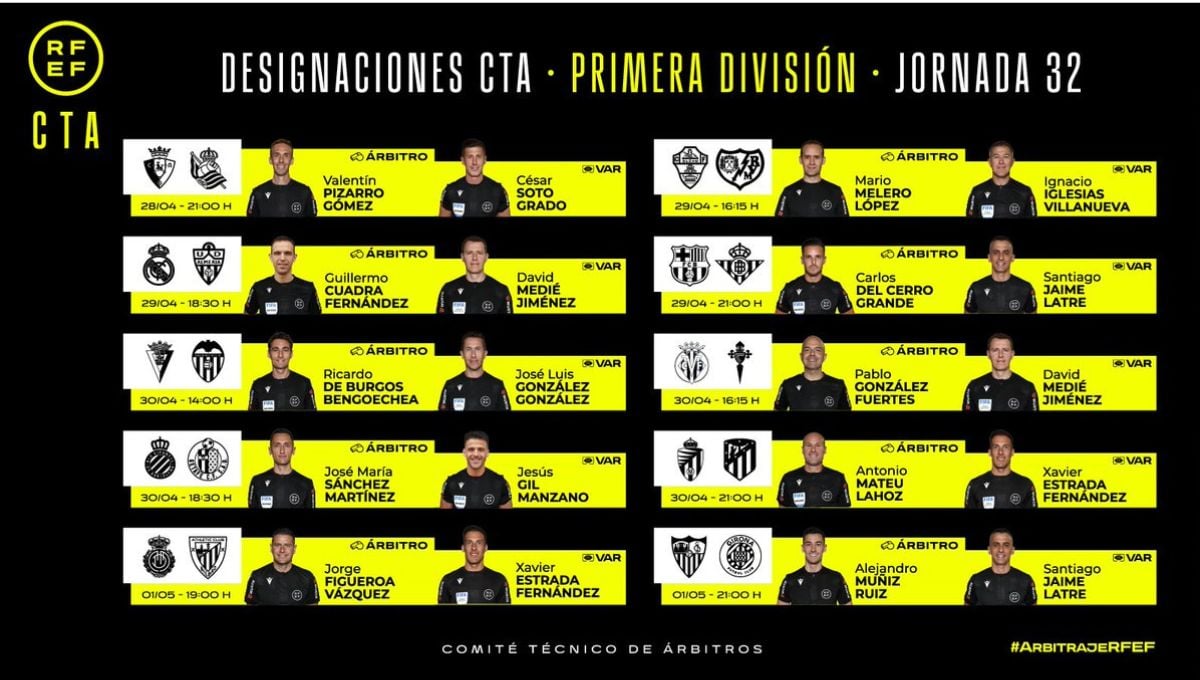 Árbitros de LaLiga en la jornada 32