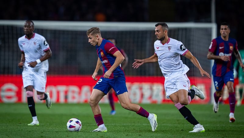 Joan Jordán volvía a la titularidad en un partido complicado, en el que tenía que frenar a Gavi y Gundogan, y el centrocampista catalán realizó un gran encuentro, en el que el Sevilla no pudo sacar nada positivo, de ahí su frustración.