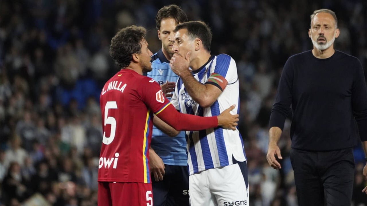 Juan Iglesias compareció ante los micrófonos de DAZN visiblemente molesto y no dudó en señalar directamente a Oyarzabal con una acusación muy seria que dejó a todos sorprendidos. Cuando le preguntaron qué había pasado al final, estalló sin más. "Muy sencillo, además me alegro de que me hagas la pregunta. El capitán de su equipo, que luego va dando ejemplo, se pone la mano en la boca para meterse con mi mujer. Pero bueno, esos son los valores que tienen aquí. Y luego lo que no quiero es que vayan dando ejemplo. Se ha puesto la mano en la boca porque no tenía huevos a decirlo", afirmó tajante el jugador del Getafe. Sin rodeos.