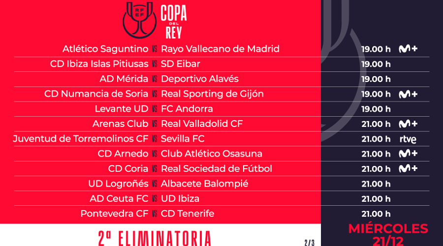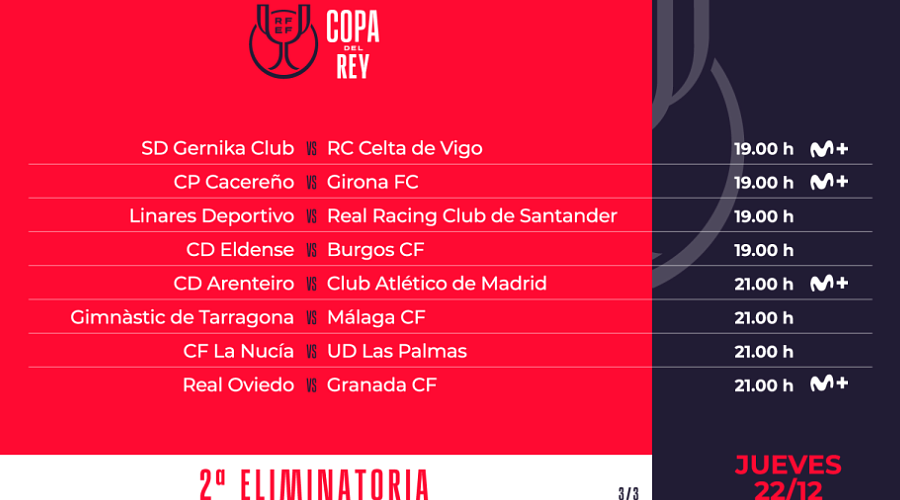 El sorteo de los dieciseisavos de final, ya con Real Betis, Real Madrid, FC Barcelona y Valencia CF en el bombo, se celebrará el 23 de diciembre, por lo que durante las Navidades podrían cambiar algunas de las franjas asignadas para la jornada 16ª