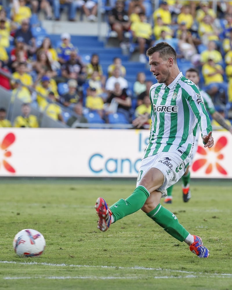De inicio, la tensión se palpaba sobre el césped del Gran Canaria, materializada en una presión asfixiante de los amarillos sobre un visitante empeñado en llevar la iniciativa, con Gio como maestro de ceremonias, aunque Moleiro tardó apenas dos minutos en sacarse de la chistera un caño a Ruibal y un fenomenal pase interior para que Fábio Silva se plantara solo ante su tocayo de apellido y compatriota Rui, que le ganó el mano a mano. Fue la antesala del 1-0, muestra inequívoca de que la urgencia espoleaba con más intensidad al anfitrión: Viti Rozada se deshizo con facilidad de Perraud y la puso al segundo palo, donde el talentoso mediapunta tinerfeño empujaba a placer. Demasiado fácil. Tenían una marcha más los de Luis Carrión, que, además de llegar, gozaban al fin de la ansiada efectividad. El colista ganó enseguida en confianza e impuso cierta pausa en sus elaboraciones, optando por asustar ya más en transiciones y dejar el riesgo a los verdiblancos.