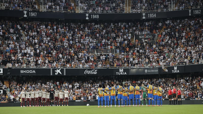En Mestalla dos rivales eternos como Valencia y Villarreal se unieron en un sentido homenaje que puso los pelos de punta de todos los asistentes antes del inicio de un partido con claro color 'groguet'. Desde los videomarcadores se mostraron imágenes de la trágica DANA que el 29 de octubre de 2024 dejó 229 víctimas mortales y la reacción solidaria del pueblo de los días posteriores.