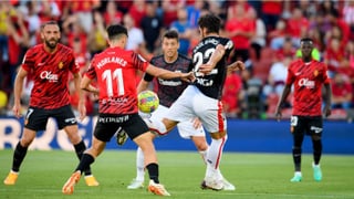 Eso sí, el colegiado sevillano Figueroa Vázquez castigó al equipo de Javier Aguirre con tres amonestaciones en menos de quince minutos. La vieron el capitán Raíllo y el delantero Muriqi por sendos saltos con el brazo despegado del cuerpo, así como el lateral Maffeo por detener a Ander Herrera cuando se disponía a montar un contragolpe. Por el bando vasco, solo la vio Yuri en este primer acto pese a que Son Moix apretó de lo lindo para que la balanza se igualara antes del descanso.