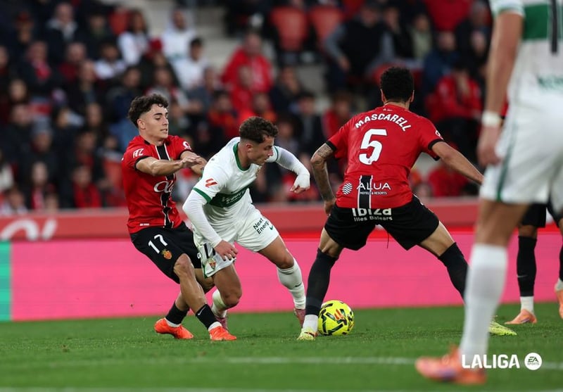 Partido muy entretenido el que nos han brindado esta tarde de sábado Mallorca y Elche en Son Moix y que logró llevarse el Mallorca a su terreno en el tramo final del choque aunque fue mejor durante casi los 90 minutos. Desde los primeros compases el conjunto de Eder Sarabia intento imponer su duelo deseado con el control del balón pero la efectiva presión de los de Arrasate surtió efecto muy pronto encontrando el gol como premio.