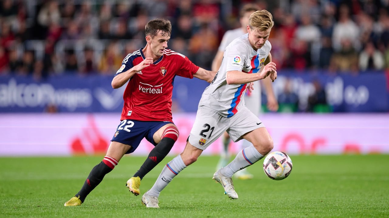 Aimar Oroz y De Jong pelean por el esférico durante un Osasuna - BarçaUES