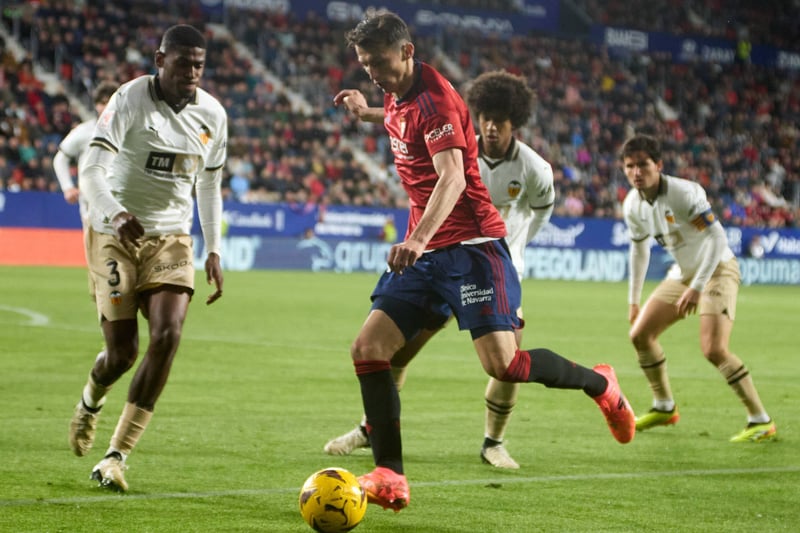 Al principio con poco acierto pero convirtiéndose en un auténtico vendaval en los últimos minutos de la primera parte. La mejor ocasión para Osasuna llegó tras un saque de esquina que llegó a los pies de Moi Gómez y que tras golpear en un rival su disparo, este de desvió y acabó golpeando el palo de la portería de Mamardashvil. El Valencia aguantó como pudo y ahí se llegó al descanso.