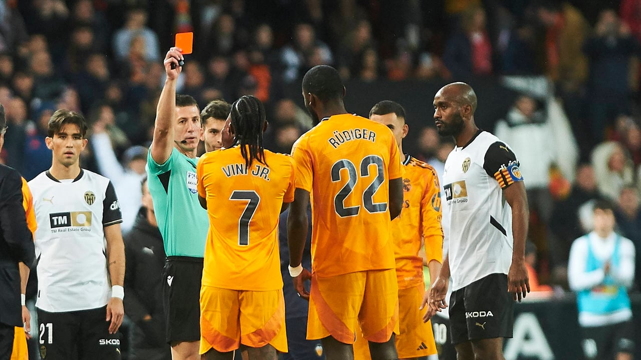 Por otra parte, Soto Grado ha arbitrado un total de 22 partidos al Real Madrid, firmando 14 victorias, seis empates y dos derrotas. En la otra cara de la monera, el colegiado ha pitado al Barcelona en 14 encuentros, con unos datos de seis victorias, tres empates y cinco derrotas. Además, el árbitro tiene también un antecedente con Vinicius, al que expulsó, mostrándole tarjeta roja directa, en el choque del conjunto blanco ante el Valencia en Mestalla del pasado 3 de enero de 2025, en la que supuso, aún así, al victoria de los de Carlo Ancelotti, por aquel entonces, por 1-2 tras los goles de Luka Modric y Jude Bellingham.