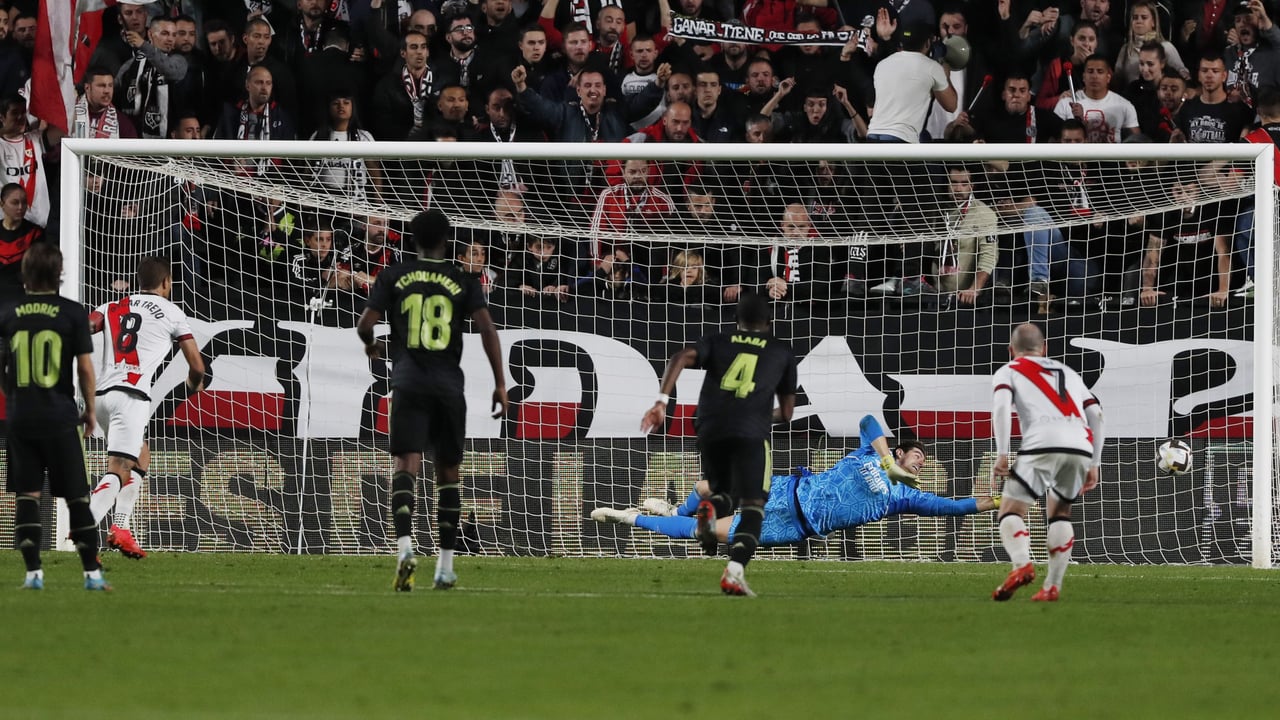 En el tiempo añadido, y a la desesperada, subió a rematar el último saque de esquina Courtois, aunque ese asedio del Real Madrid no dio sus frutos debido al buen hacer de la defensa rayista.
