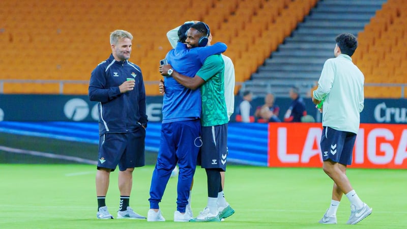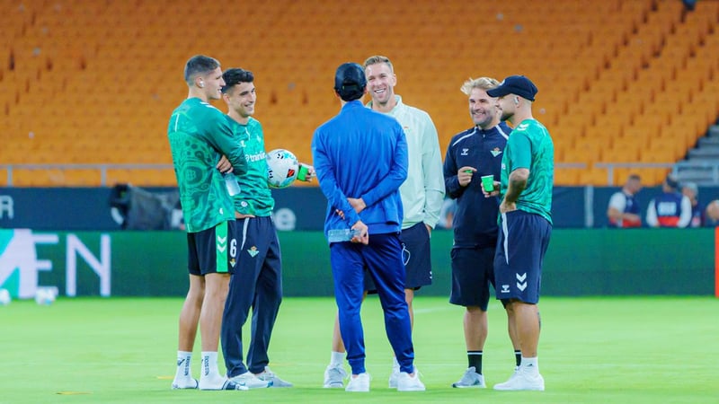 Buen rollo entre Johnny Cardoso y los jugadores del Betis