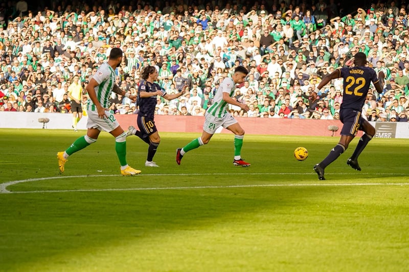 El arranque dejaba ya claro que la intensidad iba a ser una de las apuestas del anfitrión, atosigando en todo el campo al colíder de Primera división y dibujando enseguida rápidas transiciones, con la encomienda de finalizar todas las acciones. Por eso, Marc Roca tardó menos de tres minutos en probar los reflejos abajo de Lunin, sorprendente titular bajo palos por la recuperación de Kepa, aunque Ancelotti ya dejó entrever en la víspera que estaba muy contento con sus dos porteros. Robaba mucho y bien el conjunto verdiblanco, aunque su oponente avisó en cuanto Rodrygo pudo ganar la espalda de Aitor Ruibal, si bien Modric cabeceó desviado a bocajarro, llegando con fuerza desde atrás. A renglón seguido, el brasileño caía en el área al tirarse con descaro, pese a los comentarios increíbles de los comentaristas de Movistar Plus, aunque la respuesta no pudo callar bocas, ya que Isco pifió el remate desde cerca tras la dejada de Ayoze, sin que Willian José pudiera aprovecharlo luego.