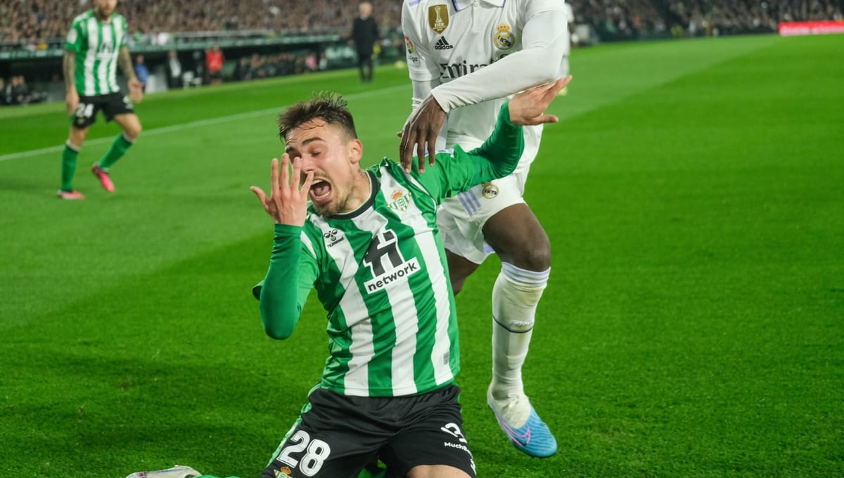 A tres y pico del intermedio, Ruibal y Sabaly demostraron que no sólo se aplicaban en la resta, sino también en ataque, aunque el internacional senegalés se llenó de balón a la postre para no disparar ni centrar cuando se aproximaba a la línea de fondo. Borja Iglesias, un islote muy a su pesar, mantenía un pulso espectacular de poder a poder con los centrales blancos, mientras que Pezzella y Luiz Felipe eran un frontón en la otra parte del campo. Aunque no tan lejos, pues Pellegrini optaba por adelantar su defensa para estrechar espacios, asumiendo riesgos pero reduciendo distancias a la hora de correr hacia Courtois. Y en una de éstas se llegó al descanso, con el colegiado enseñando la patita, quién sabe si todavía con el gol (perfecta y legalmente) anulado en la cabeza, al cortar una penetración de Rodri por una falta de Aitor a Camavinga que existió, si bien normalmente los árbitros pecan de lo contrario, de dejar terminar acciones que no van a validarse, mientras que aquí no se pudo conocer cómo rubricaba.