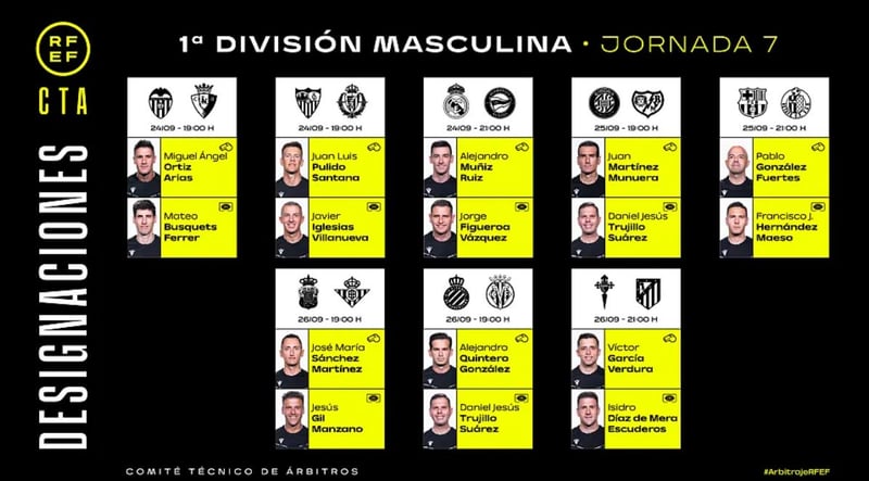 El colegiado gallego Alejandro Muñiz Ruiz dirigirá el encuentro entre Real Madrid y Alavés, con el andaluz Jorge Figueroa Vázquez al frente de la Sala del VAR. Los cinco penaltis a favor de los blancos en sólo seis jornadas harán que la lupa esté puesta en todas sus decisiones