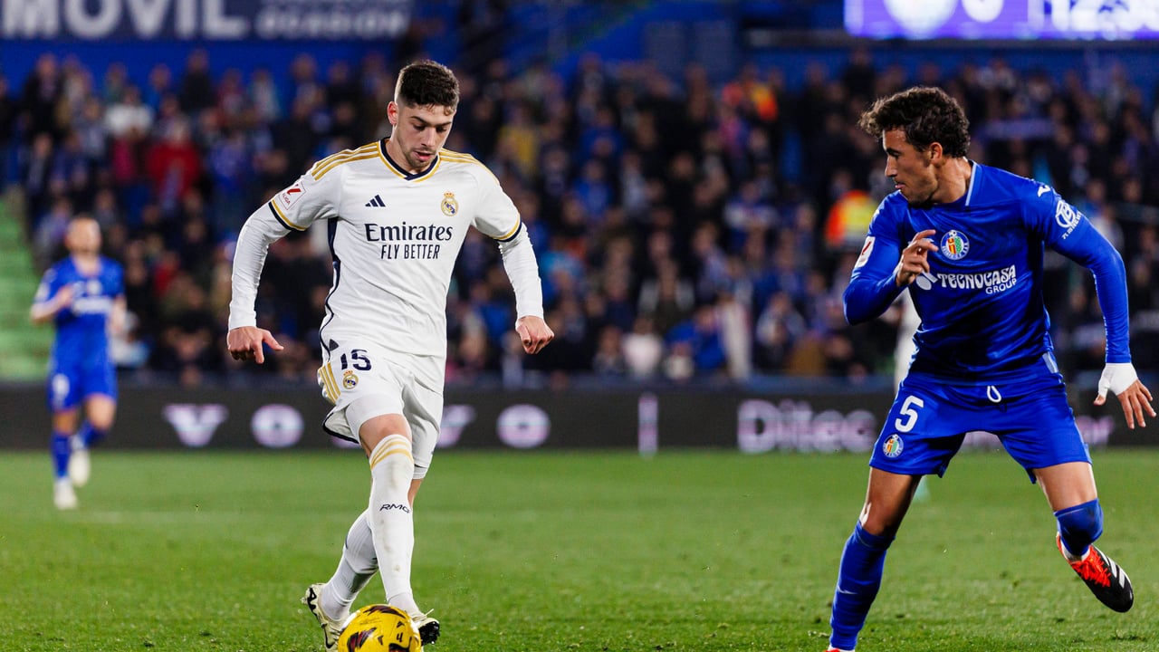 Valverde con el balón en el último partido en el que se enfrentaron Getafe y Real MadridCordon Press