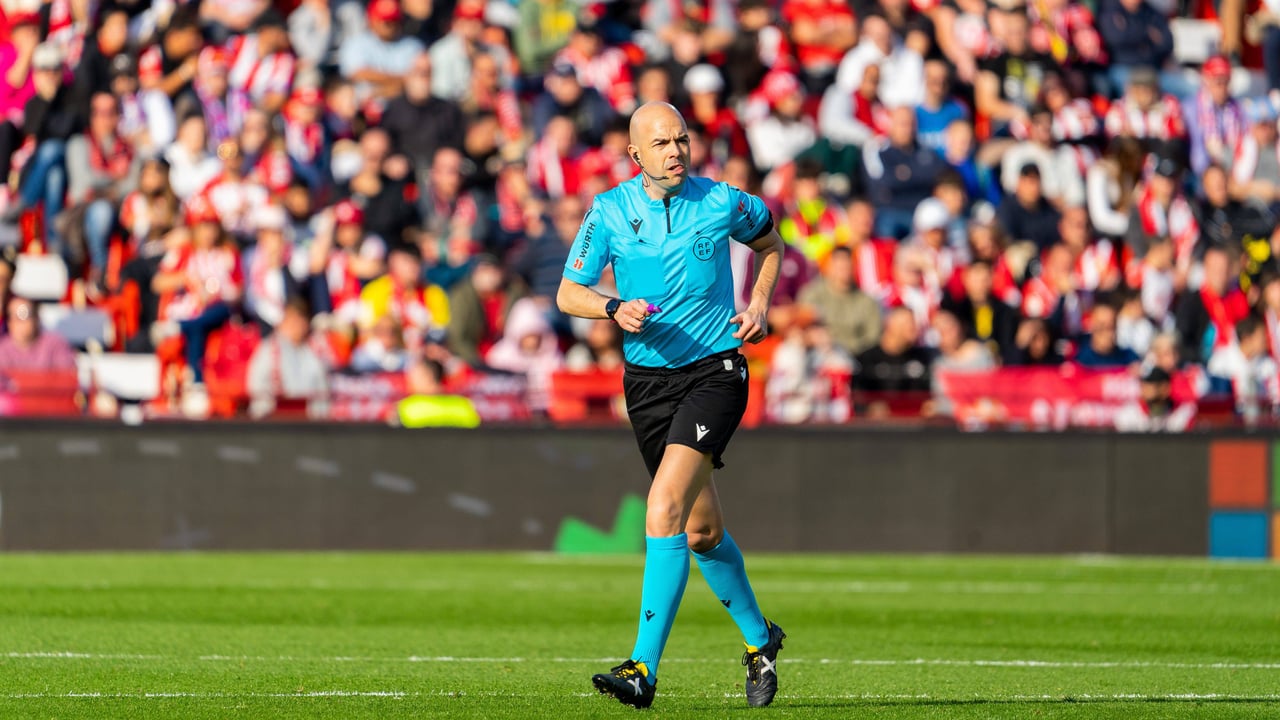Pablo González Fuertes arbitrando un partido de LaLigaCordon Press