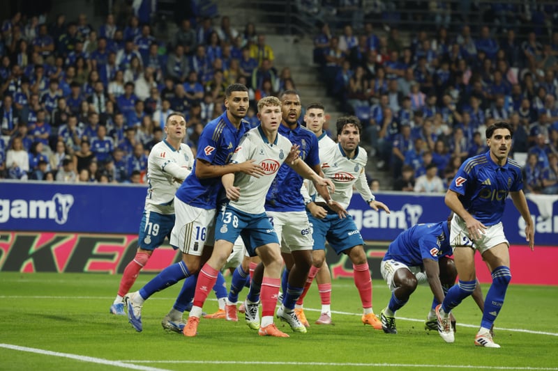 En primer lugar, Luis Carrión volvió al Carlos Tartiere y lo hizo alineando a los siguientes futbolistas para enfrentarse al RCD Espanyol, en el encuentro correspondiente a la jornada 9 de LaLiga EA Sports: Aarón Escandell; Rahim Alhassane, David Carmo, Eric Bailly, Nacho Vidal; Santiago Colombatto, Leander Dendoncker, Luka Ilic; Chaira, Rondón y Hassan. Por otra parte, Manolo González introdujo novedades en un once formado por: Marko Dmitrovic, Carlos Romero, Leandro Cabrera, Clemens Riedel, Rubén Sánchez, Pol Lozano; Dolan, Edu Expósito, Kike García y Roberto Fernández. Uno de los más destacados en la primera parte fue el portero del Real Oviedo, absolutamente clave para evitar los goles del conjunto perico, sobre todo por Kike García, que cabeceó un remate con el que estuvo muy cerca de estrenar el marcador.