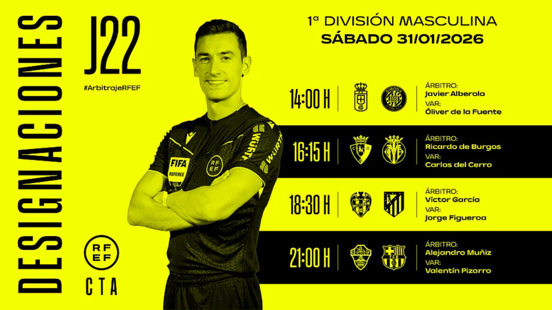 El encargado de dirigir el encuentro será Javier Alberola, que contará con Óliver de la Fuente en el VAR