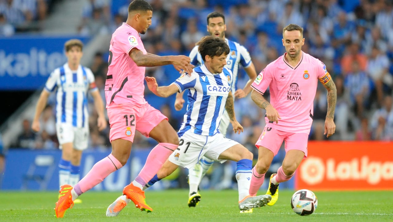 El conjunto catalán arriba tenía mucha pólvora con Joselu y Braithwaite -cerca de 200 goles como profesionales entre ambos- ante una defensa totalmente canterana que minimizó el poder ofensivo del Espanyol y que permitió a los donostiarras dominar todo el primer período.