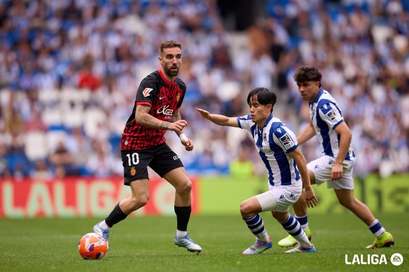 Real Sociedad: Remiro, Aramburu, Jon Martín, Aritz, Aihen, Pablo Marín (Olasagasti 72'), Zubimendi, Sucic (Oskarsson 56'), Kubo (Mariezkurrena 72'), Oyarzabal y Barrenetxea (Sergio Gómez 46').Mallorca: Greif, Maffeo, Valjent, Raíllo, Copete, Mojica (Toni Lato 85'), Samu, Darder, Antonio Sánchez (Mateu Morey 85'), Dani Rodríguez (Mascarell 72'), Larin (Abdón Prats 80')Goles: 0-1 (20') Larin; 0-2 (47') Sergi Darder.Árbitro: Munuera Montero (andaluz). Amonestó a los locales Oyarzabal, Zubimendi y Aramburu; por parte visitante vio la cartulina amarilla Maffeo.Incidencias: Reale Arena. 29.181 espectadores.