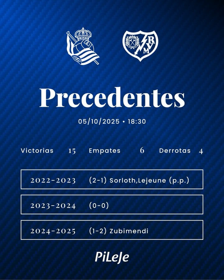 La Real Sociedad, en puestos de descenso con cinco puntos, y el Rayo Vallecano, fuera de la zona roja pero con los mismos puntos, se enfrentan en Anoeta en la octava jornada de LaLiga EA Sports con el objetivo de ganar y llegar con más tranquilidad clasificatoria al parón de selecciones.