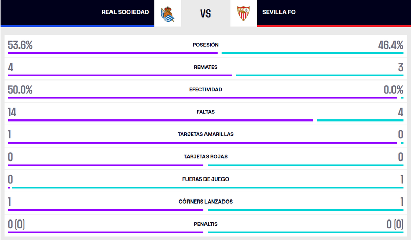No hay tiempo para más. Ventaja clara para la Real Sociedad. Le tocará reaccionar al Sevilla en la segunda parte.