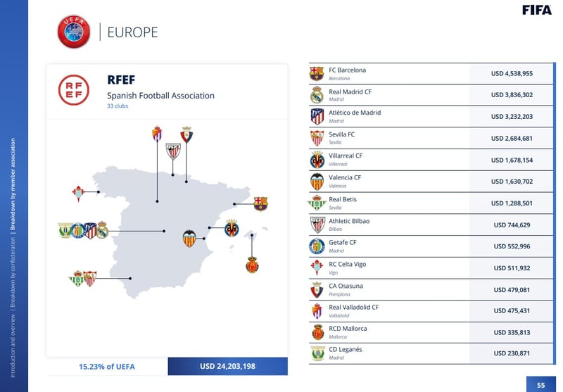 El organismo futbolístico ha repartido el dinero correspondiente a la cesión de los jugadores a sus clubes por la Copa del Mundo