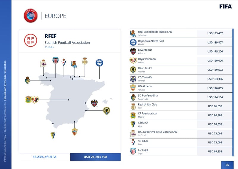 - UD Almería: el equipo almeriense contaba con la participación de Srdjan Babic como representante del club en el Mundial de Qatar. Los rojiblancos recibirán 146.005 dólores. También se tienen en cuenta otros jugadores que marcharon del club hace tiempo, como puede llegar a ser Darwin Núñez.