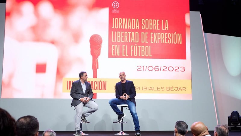 "Libertad de expresión no es que cualquiera diga lo que le dé la gana. Hay gente que se escuda dentro del marco genérico de la libertad de expresión para que valga cualquier cosa, todo el mundo está sujeto a cualquier opinión sin límite y eso no es la libertad de expresión", señalaba ayer Rubiales en la apertura de la jornada ‘Libertad de expresión en el fútbol’, organizada por la RFEF en la Ciudad del Fútbol.