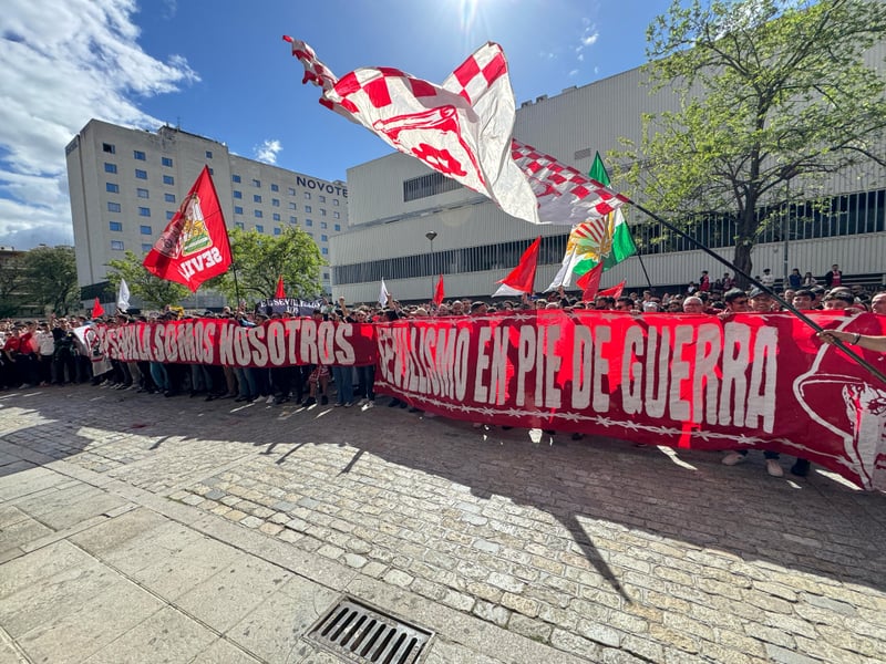 La manifestación que se está llevando en los alrededores del Estadio Ramón Sánchez-Pizjuán ha sido convocada por Biris Norte y se ha titulado 'Rodea el estadio'. El objetivo es mostrar el descontento por la gestión del actual consejo de administración del presidente José María del Nido Carrasco. Muchos insultos contra el mandamás del club de Nervión, gritos pidiendo la marcha del director deportivo Víctor Orta y la afición se reivindica diciendo que ella es el Sevilla FC.