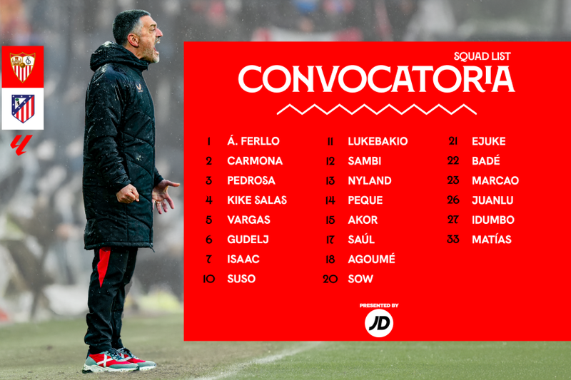 Cómo llega el Sevilla: "Venimos de dos derrotas duras, especialmente la del último partido contra el Betis. Sabemos lo que representa este partido para nosotros, para la afición. El equipo compitió bien en la primera parte, en la segunda nos costó mucho. Lo importante es hacer bien las cosas hoy contra un rival difícil, como el Atlético de Madrid, para que la gente se sienta orgullosa de nosotros".