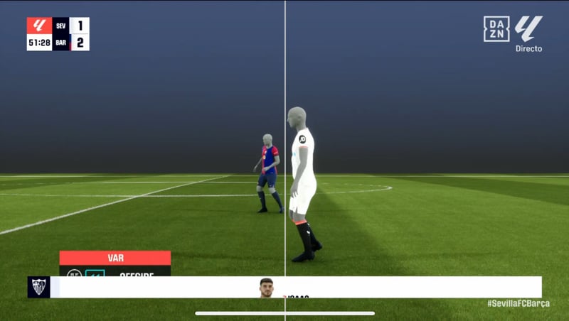La segunda parte se presentaba apasionante. Y no defraudó: antes de cumplirse el primer minuto, Fermín López, sustituto del renqueante y amonestado Gavi, cabeceaba picado a la red un centro preciso y precioso de Pedri. Se coló el onubense, indetectable, a la espalda de Kike Salas, que acudió a la marca de Robert Lewandowski. Casi calca el Sevilla FC lo que ocurrió a continuación del 0-1, pero el internacional suizo estaba en claro fuera de juego cuando empujó en el segundo palo el centro-chut de Isaac Romero. De hecho, ya partió Lukébakio, iniciador de la transición, en posición ilegal, como 'chivó' el sistema semi automático. Pero no se detendría ahí la emoción, ya que, a los nueve minutos, Djibril Sow reclamó un empujón dentro del área de Jules Koundé. Consideró Hernández Hernández, lo que le ratificó Del Cerro Grande desde la sala VOR, que el empujón del francés fue muy leve. La jugada continuó y Raphinha, con su pierna menos buena (le cerraba el remate de zurda Loïc Badé), cruzó raso al fondo de las mallas para poner tierra de por medio.