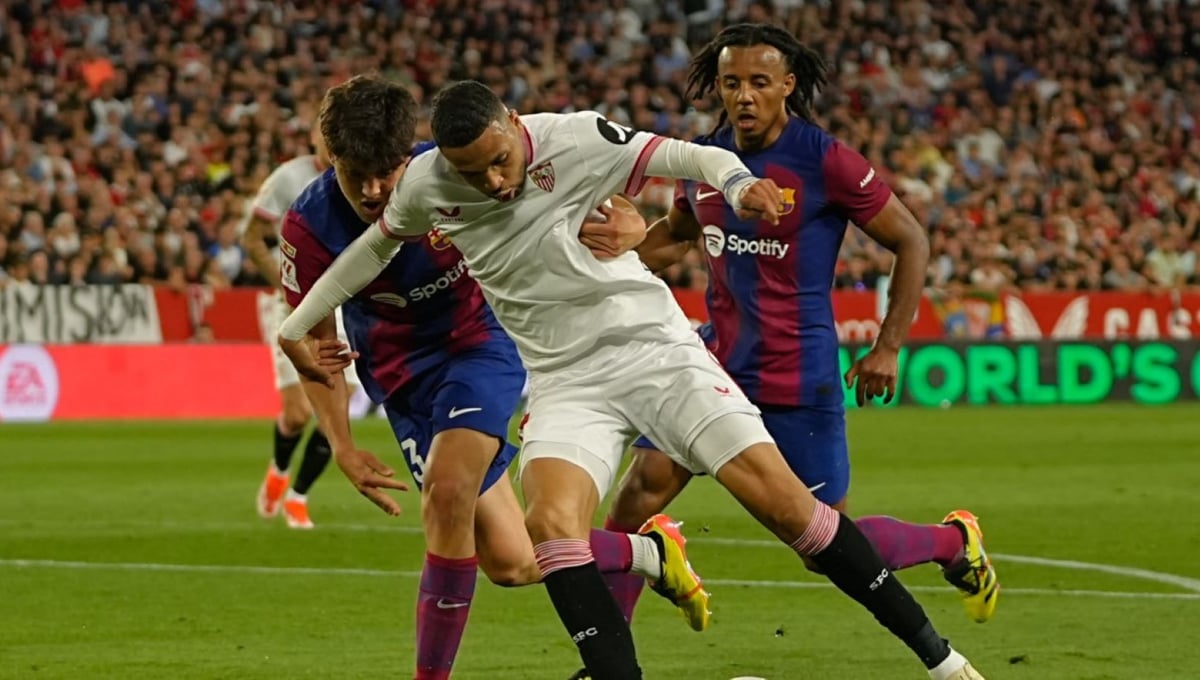 Sin nada en juego, el partido comenzó marcado por las protestas de la afición del Sevilla FC contra la directiva de su club, las cuales se iniciaron antes del encuentro y posteriormente se extendieron al interior del estadio Ramón Sánchez-Pizjuán. En los primeros 15 minutos, sólo valió un centro chut de Fermín que desvió Nyland ya que anteriormente un tiro dentro del área de Lamine Yamal fue anulado porque Pedri no pudo evitar que el balón se perdiera fuera del terreno de juego.
