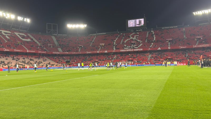 Pese a la hora de un día laborable, se van llenando las gradas del Ramón Sánchez-Pizjuán. Queda un cuarto de hora para que esto arranque.
